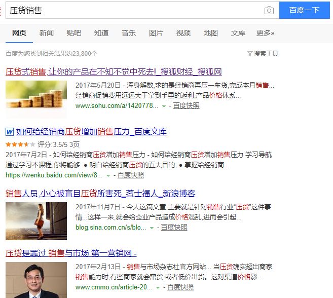 百度对压货销售的检索结果中也可以体现,其是一种企业营销策略。联想到电商各种造物节,提前十几天即开始预售,所有的货款都是造物节当天付款,以制造当日销售额记录。事后也会发生很多退货、退款行为,这是否也是一种虚假销售呢?